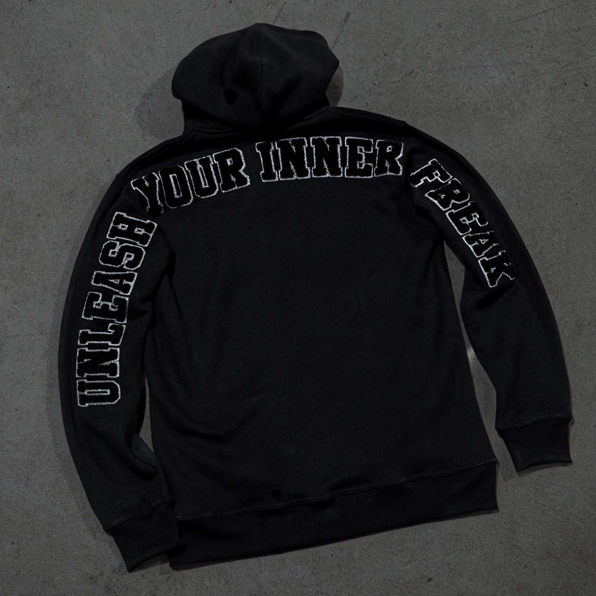 This heavyweight hoodie is built for the ones who move different. Featuring a bold varsity “FREAK” chenille patch across the chest and our signature phrase stitched below, it’s more than a hoodie — it’s a statement.